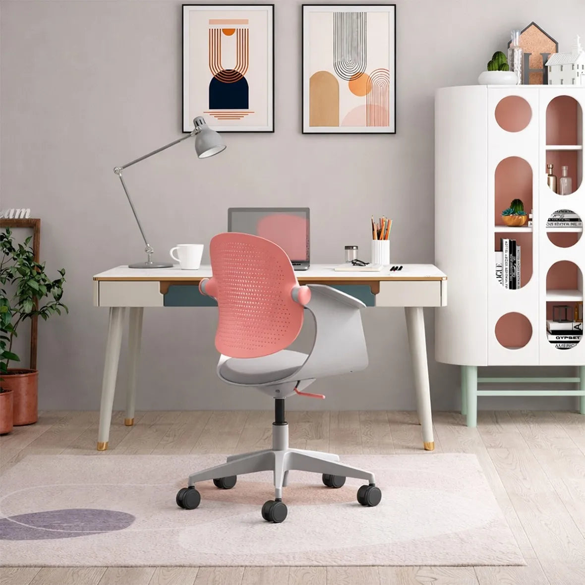 - Seat Height Adjustment: Smooth seat height adjustment adapts easily to different desk heights and user preferences.