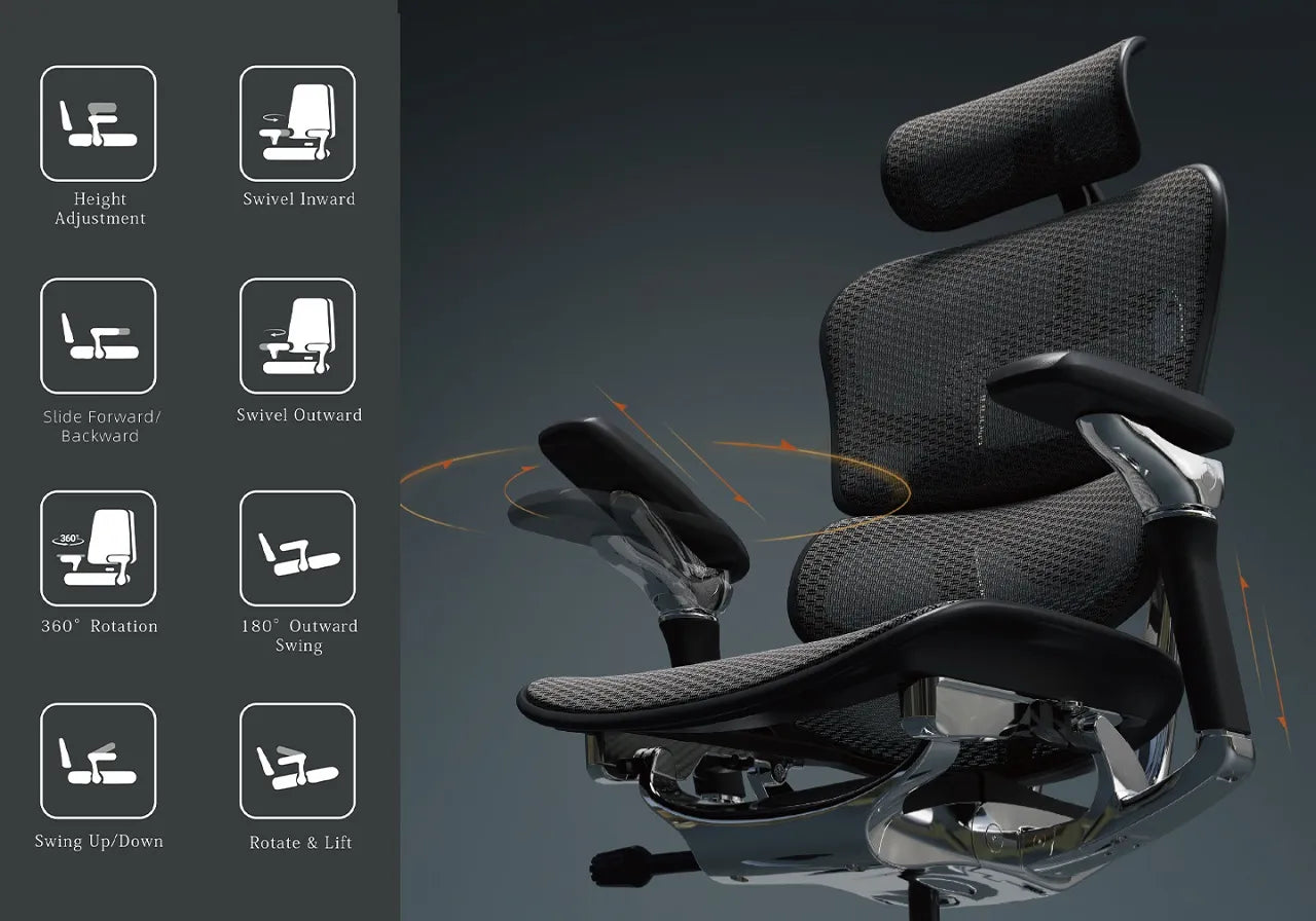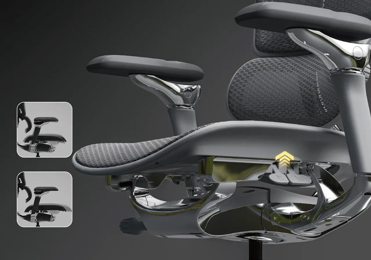 - All-Aluminum Structural Bracket: Armrests, back support bracket, and mechanism housing are all made from high-precision aluminum, ensuring excellent strength, durability, and a premium metallic finish across the entire series.