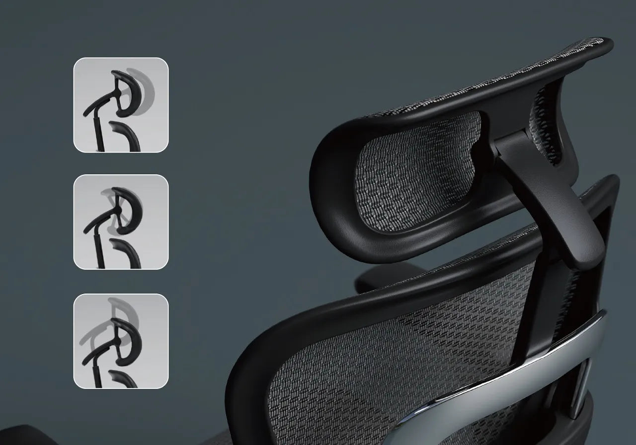 3D adjustable headrest with front-to-back, tilt, and height adjustment.