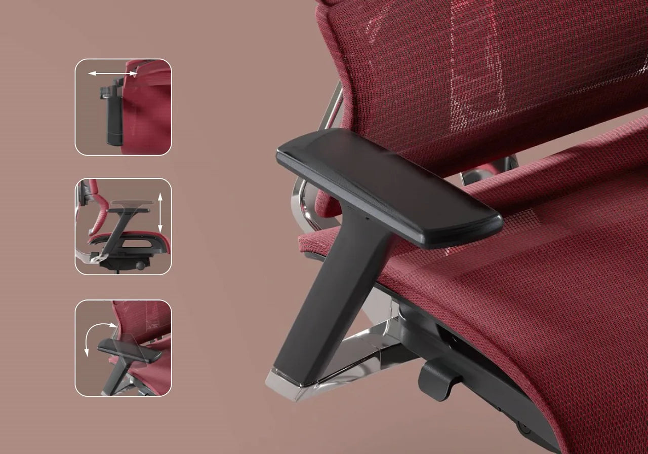 - 3D Adjustable Armrests: Armrests support multi-directional adjustment to accommodate different working positions and desk heights.